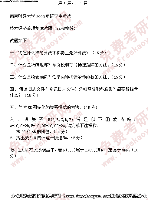 西南财经大学考研专业课试卷