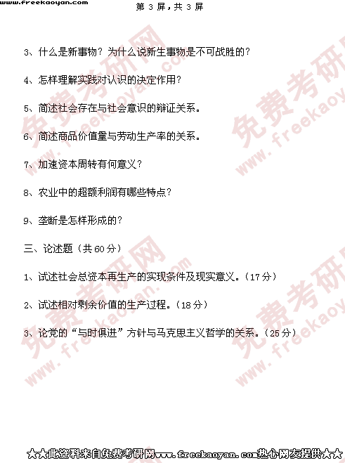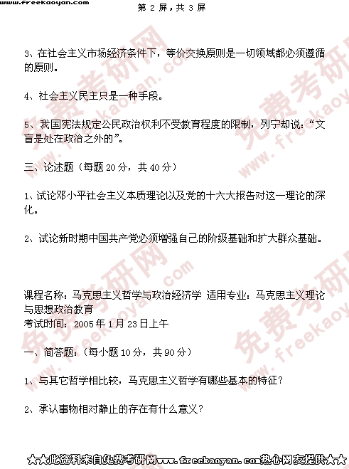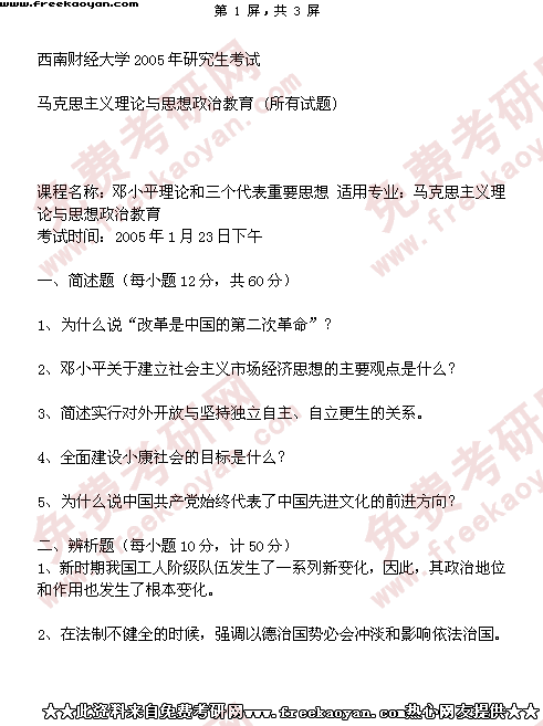 西南财经大学2005年硕士研究生入学考试马克思主义理论与思想政治教育 (所有试题)