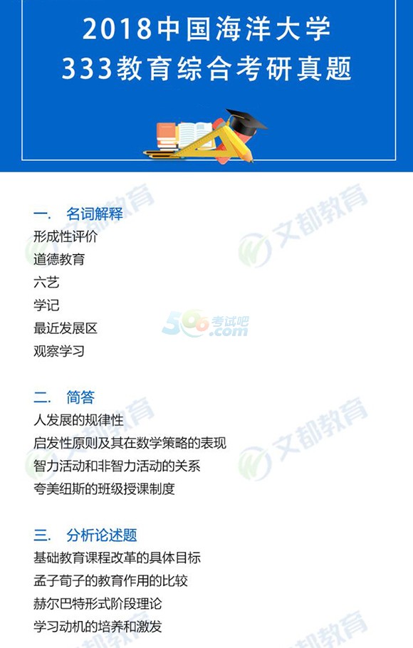 考研分数线 本站小编 免费考研网 2018-01-01中国海洋大学是一所以海洋和水产学科为特色,包括理学、工学、农学、医(药)学、经济学、管理学、文学、法学、教育学、历史学、艺术学等学科门类较为齐全的教育部直属重点综合性大学,是国家“985工程”和“211工程”重点建设高校之一,是国务院学位委员会首批批准的具有博士、硕士、学士学位授予权的单位。 一、 ...