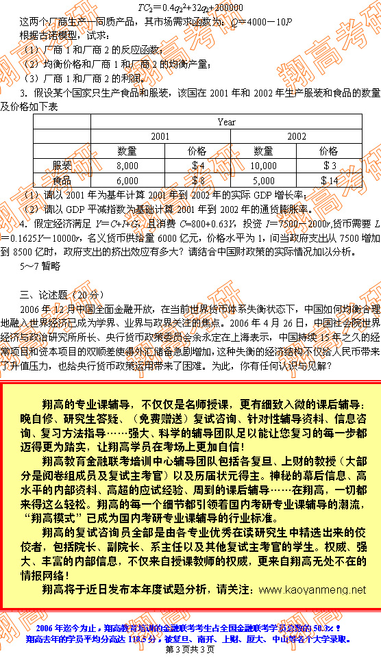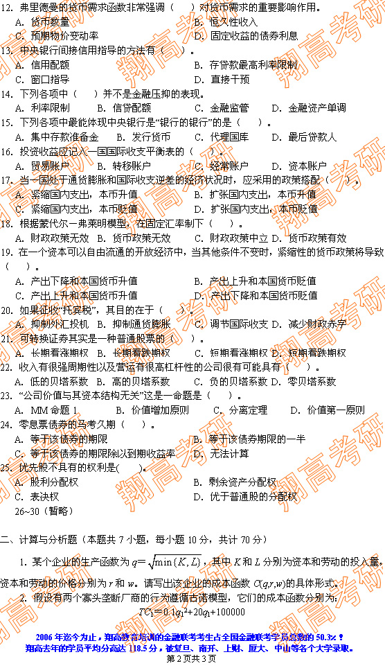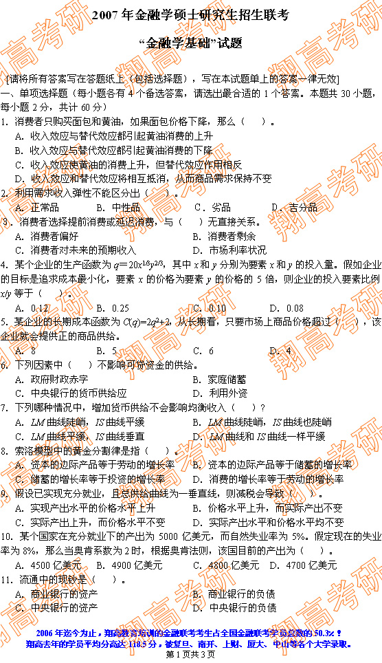 2007年金融联考试题(部分)