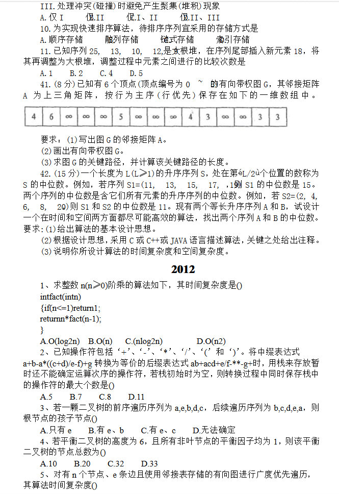 2009-2015计算机考研数据结构统考历年真题(5)