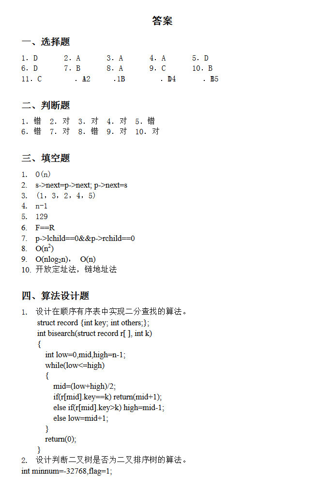 计算机考研资料 本站小编 福瑞考研网 2016-12-15计算机考研数据结构试卷十一(练习题含答案)