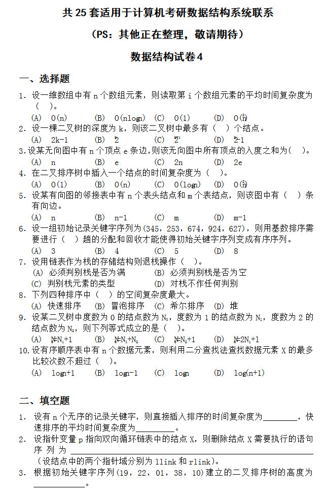 计算机考研资料 本站小编 福瑞考研网 2016-12-15计算机考研数据结构试卷十一(练习题含答案)