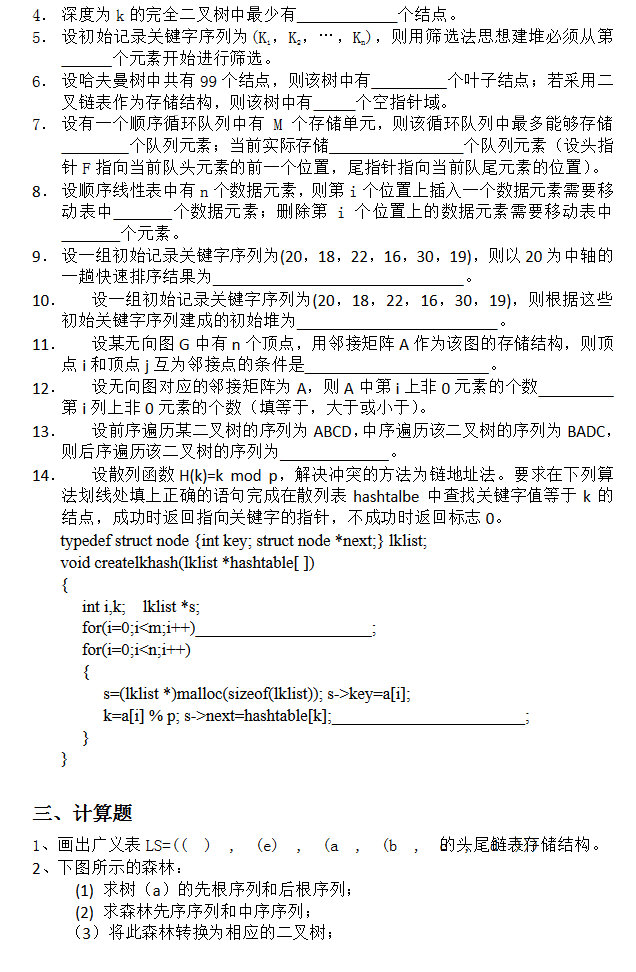 计算机考研数据结构试卷四(练习题含答案)(2)