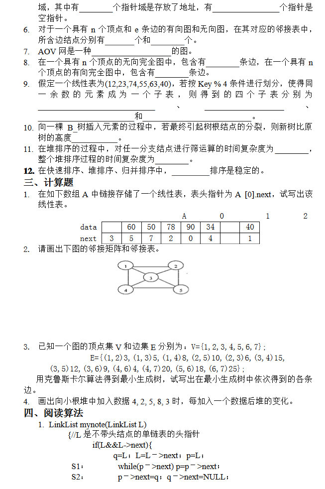 • 中南大学2007-2012年数据结构443考研试题