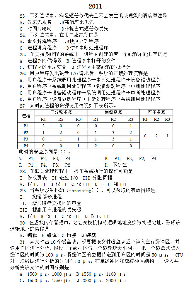 计算机考研操作系统统考历年真题2009-2015(4)