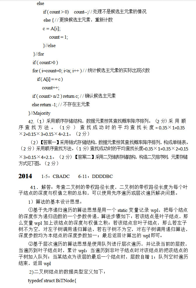 计算机考研数据结构统考历年真题答案2009-2015(6)