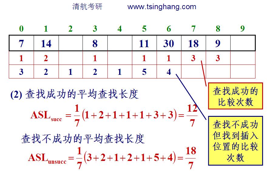 (2) 分别计算等概率情况下,查找成功和查找不成功的平均查找长度。
