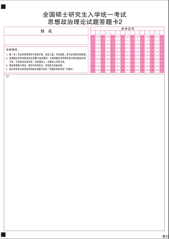 • 考研政治考试必知注意事项 附政治答题卡样式(供参考)