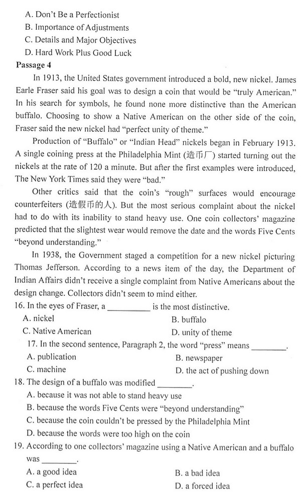 第二道,完型一道20个,主要考语法