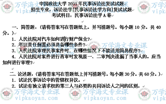 2003年中国政法大学民事诉讼法考研试题