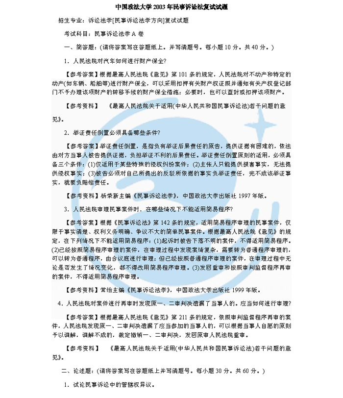 2003年中国人民大学民事诉讼法考研复试试题