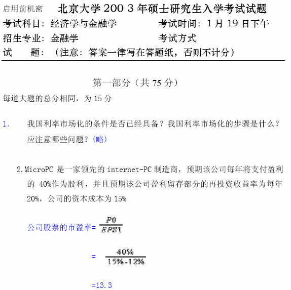 专业课考研经验 本站小编 FreeKaoyan 2018-01-22考试科目:综合考试 考试时间:98年1月18日上午招生专业:经济学院各专业 研究方向:指导教师:试题:(答题一律写在答题纸上)货币银行学一、分析题(共10分)货币供给的增加可能通过哪些途径引起总需求的增加?二、判断正误(共15分)1.未来支付的日期越近,则任何既定利率下的现值就越低。( )2.许许多 ...