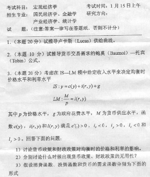 专业课考研经验 本站小编 FreeKaoyan 2018-01-22考试科目:综合考试 考试时间:98年1月18日上午招生专业:经济学院各专业 研究方向:指导教师:试题:(答题一律写在答题纸上)货币银行学一、分析题(共10分)货币供给的增加可能通过哪些途径引起总需求的增加?二、判断正误(共15分)1.未来支付的日期越近,则任何既定利率下的现值就越低。( )2.许许多 ...