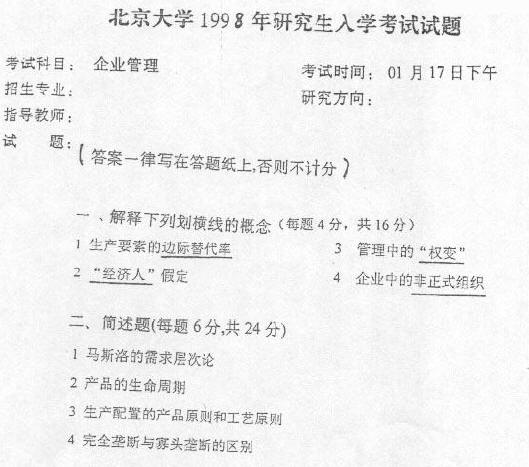 相关话题/北京大学 考研真题 企业管理
