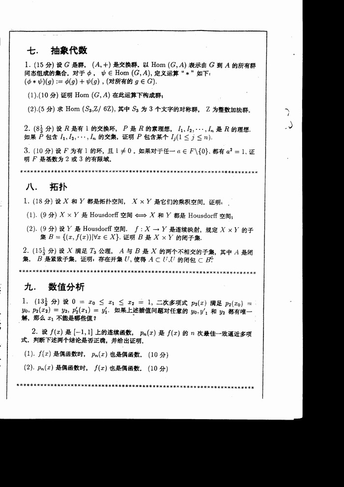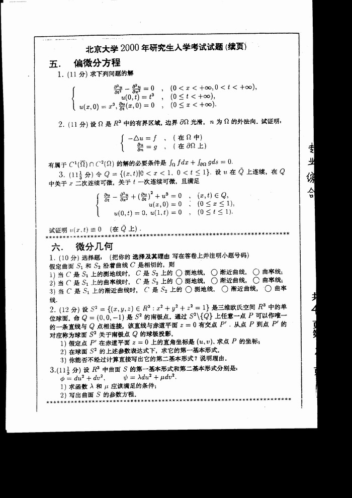 北京大学2000年考研真题-数学专业综合A