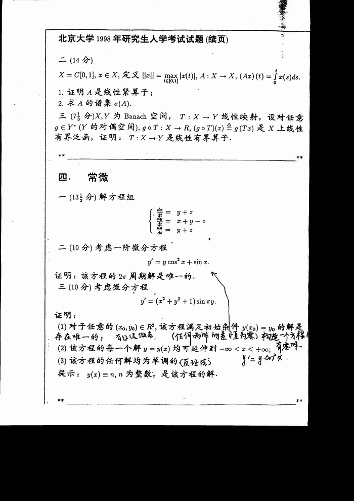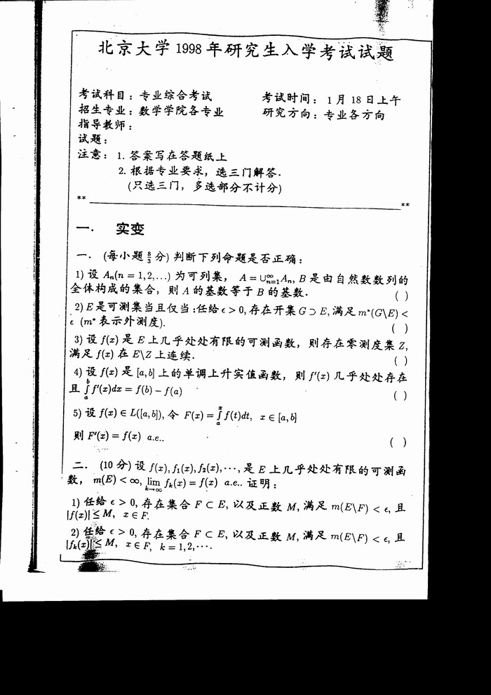 专业课考研经验 本站小编 FreeKaoyan 2018-01-22北京大学1998年考研真题-数学专业综合B