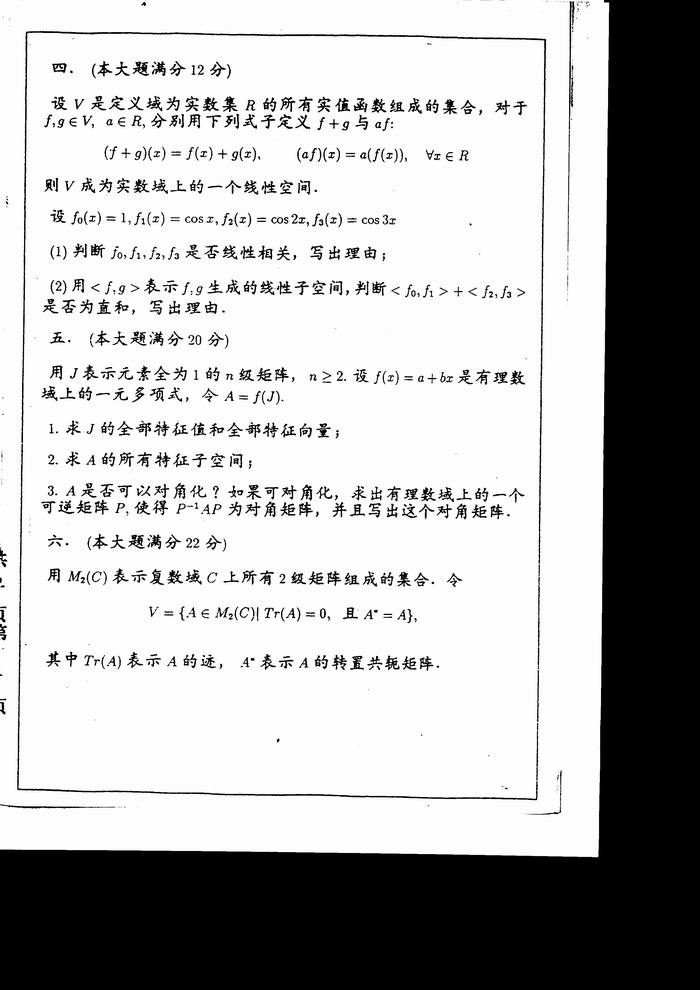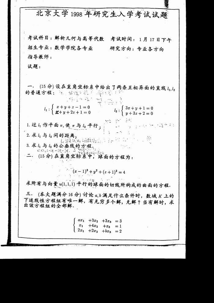 专业课考研经验 本站小编 FreeKaoyan 2018-01-22北京大学2001年考研真题-解析几何高等代数