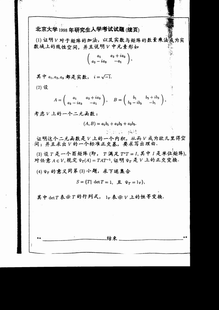 专业课考研经验 本站小编 FreeKaoyan 2018-01-22北京大学1998年考研真题-数学专业综合A