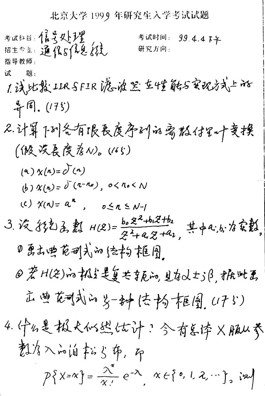 北京大学1999年考研真题-电子系信号处理