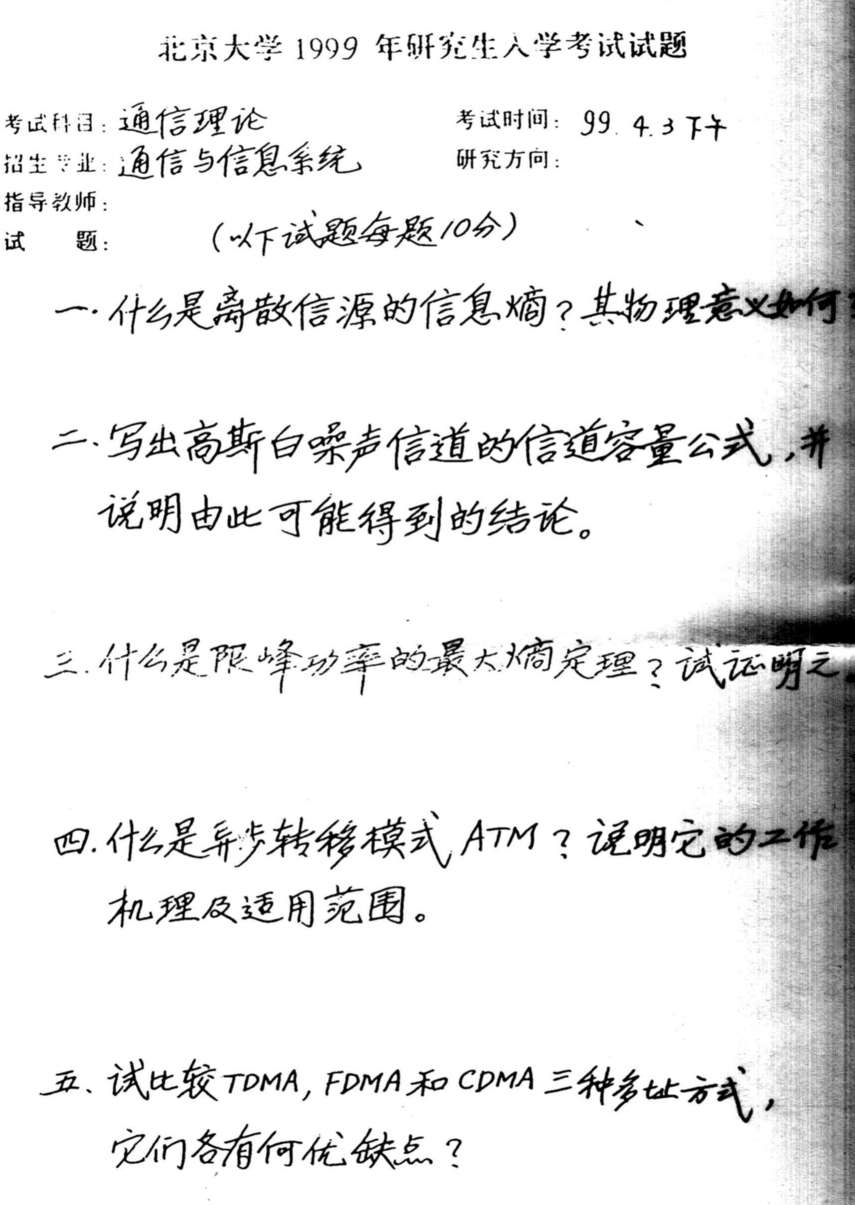 相关话题/电子系 考研真题 北京大学 通信 理论