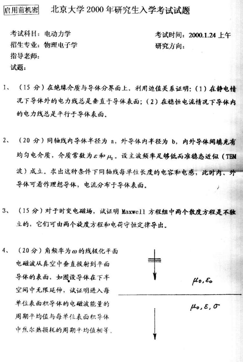 专业课考研经验 本站小编 FreeKaoyan 2018-01-22北京大学2000年考研真题-电子系普通物理