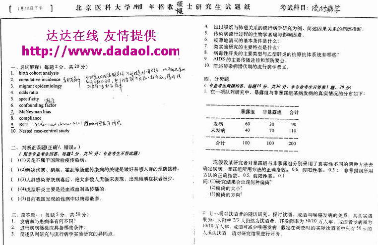 专业课考研经验 本站小编 FreeKaoyan 2018-01-22北京大学医学部2003免疫学(硕士)一、名词解释(全英文×10)1、细胞因子2、APC3、超抗原4、Fab5、自身免疫6、再次应答7、表位8、CSF9、变态反应10、免疫耐受二、问答题1、画图表示IgG结构和功能区2、外源性抗原提成的过程3、什么叫抗原,抗原免疫原性强弱因素4、补体生物学活性作用5、 ...