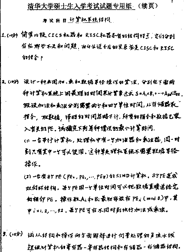 专业课考研经验 本站小编 FreeKaoyan 2018-01-22清华大学1996年考研真题-计算机系统结构