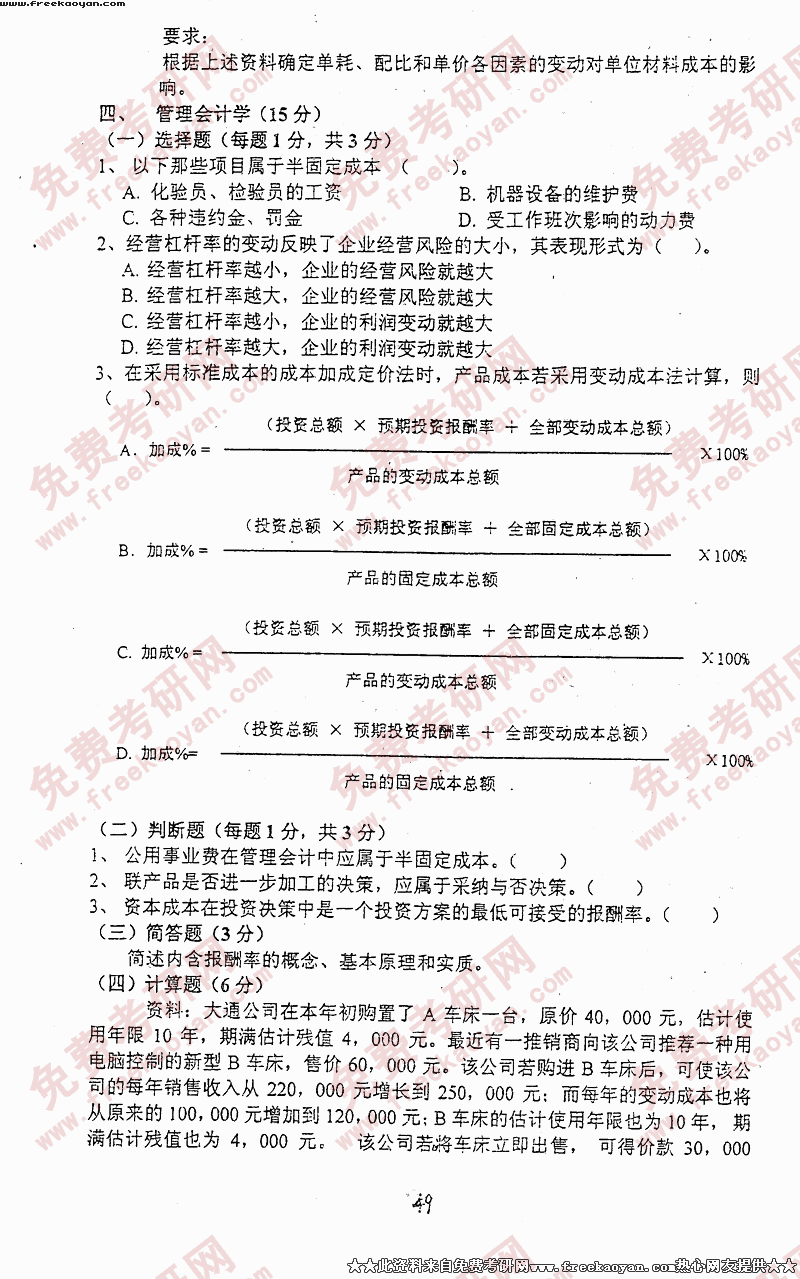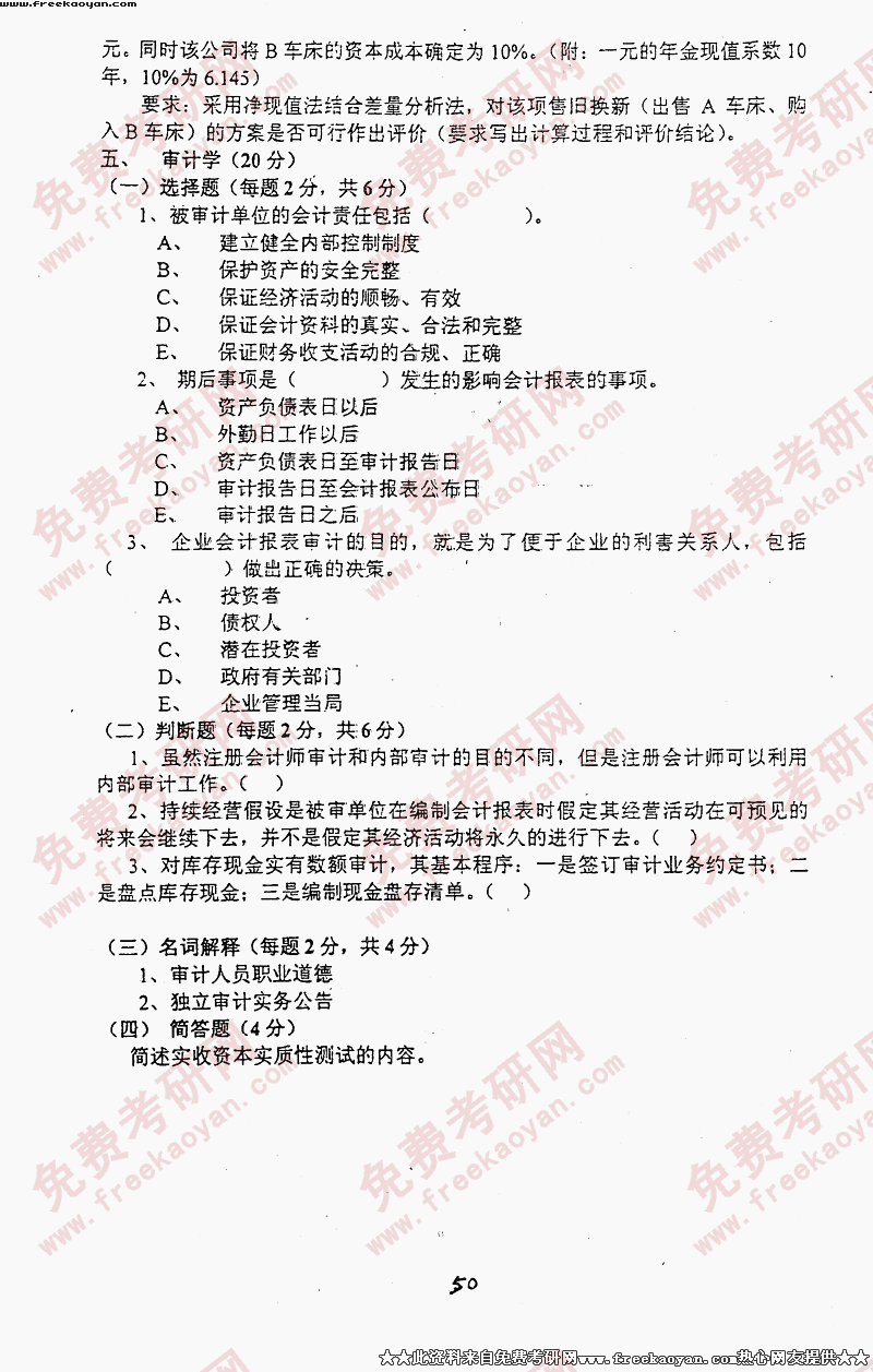 中央财经大学2001年考研真题-会计学