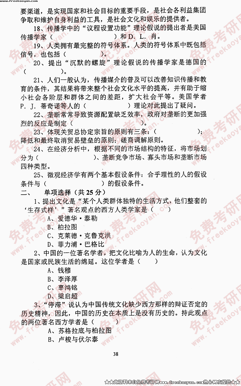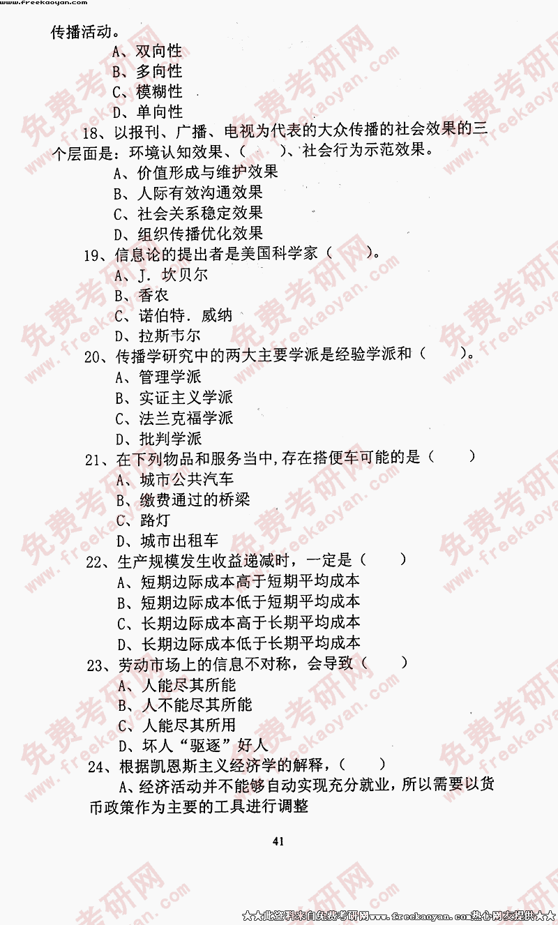 专业课考研经验 本站小编 FreeKaoyan 2018-01-22中财1999年西方经济学试题(保险精算方向)一、单项选择填空题(30分)1.就两种替代商品来说,其中一种商品的价格上升,会使另一种商品的价格()A.下降 B.不变 C.上升 D.不确定2.根据消费者选择理论,边际替代率递减意味着()A.无差异曲线的斜率为正B.无差异曲线的斜率为负C.预算线斜率 ...