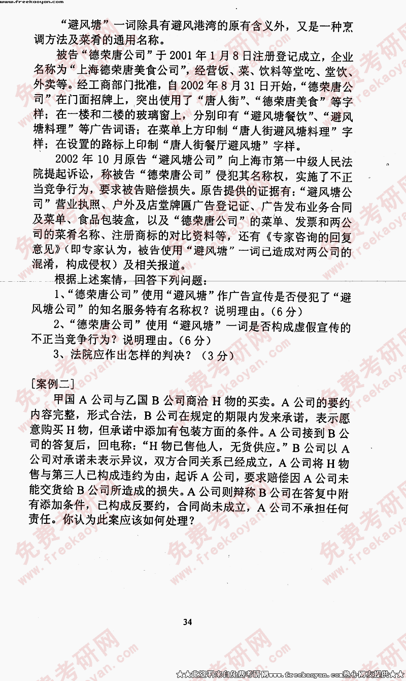 专业课考研经验 本站小编 FreeKaoyan 2018-01-22刑法学 30分一、判断 2分*31. 适用刑法人人平等的原则具体体现为定罪上一律平等、量刑上一律平等和行刑上一律平等。2. 犯罪客体是刑法所保护的、为犯罪行为所侵害的社会关系。所有的社会关系都可以成为犯罪客体。3. 危害结果作为危害行为对刑法所保护的社会关系侵害的一种事实,必然具有多样性。二、单选 ...