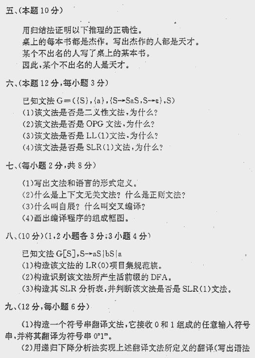 北京航天航空大学1998年考研真题-数理逻辑与编译技术