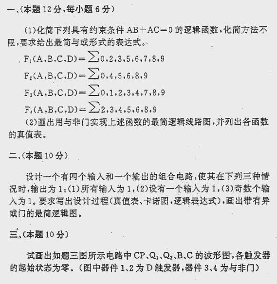 北京航天航空大学1998年考研真题-数字与模拟电路