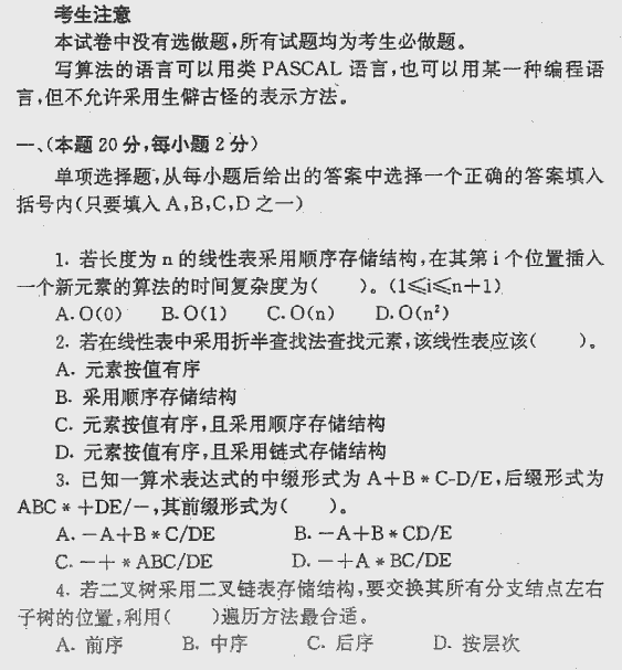 专业课考研经验 本站小编 FreeKaoyan 2018-01-22北京航天航空大学2000年考研真题-数据结构