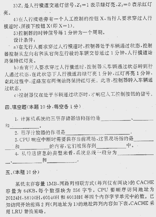 北京航天航空大学1999年考研真题-数字逻辑与计算机组成原理