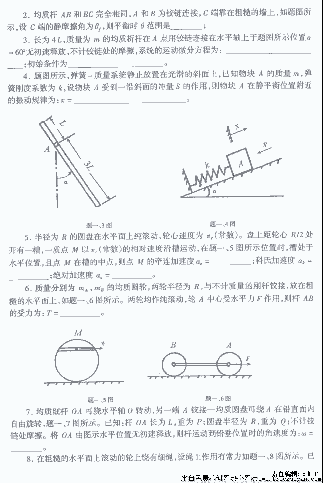 专业课考研经验 本站小编 FreeKaoyan 2018-01-22北京航天航空大学2002年考研真题-理论力学一