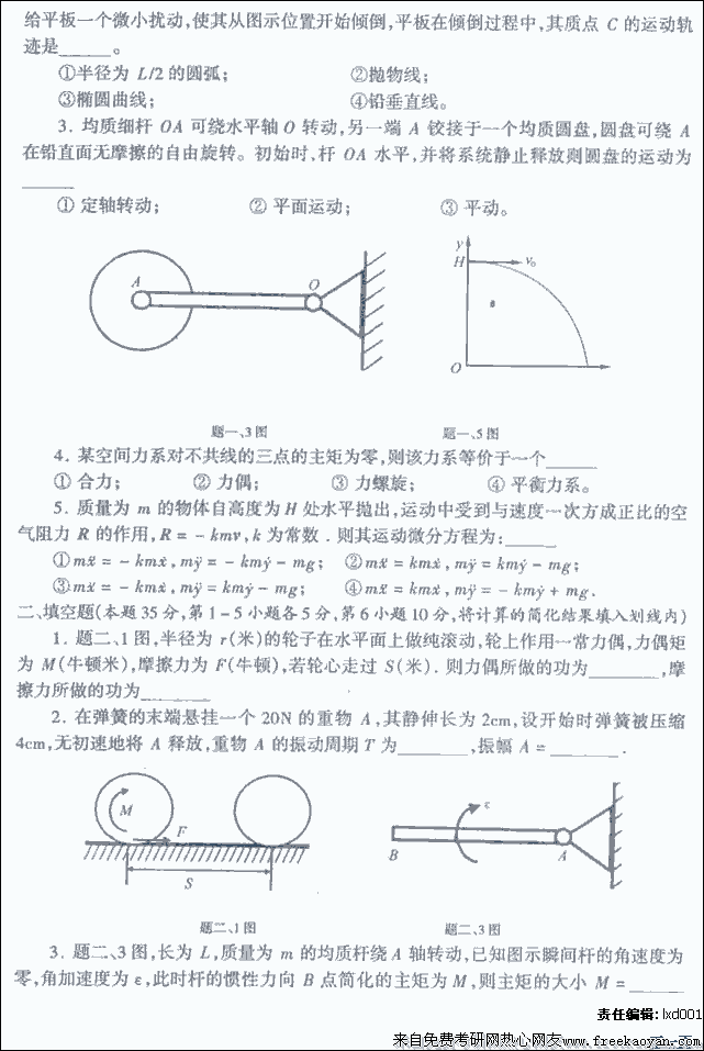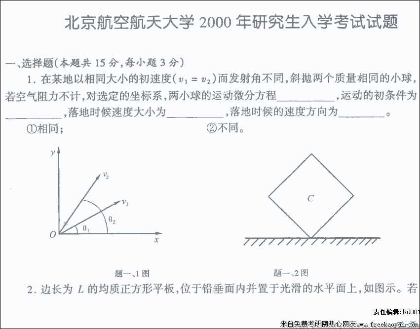 专业课考研经验 本站小编 FreeKaoyan 2018-01-22北京航天航空大学2002年考研真题-理论力学一