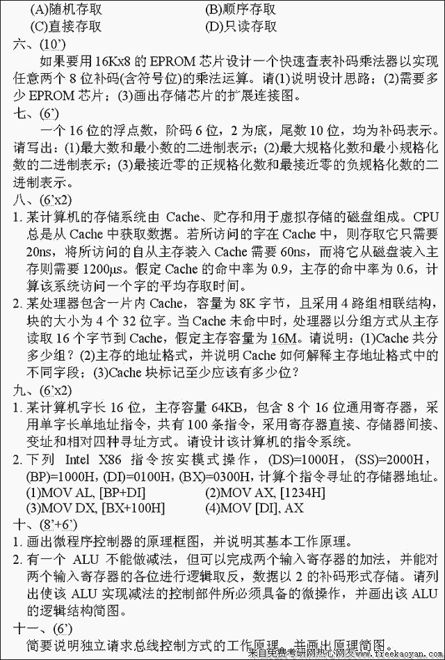 专业课考研经验 本站小编 FreeKaoyan 2018-01-22北京航天航空大学1999年考研真题-数字逻辑与计算机组成原理