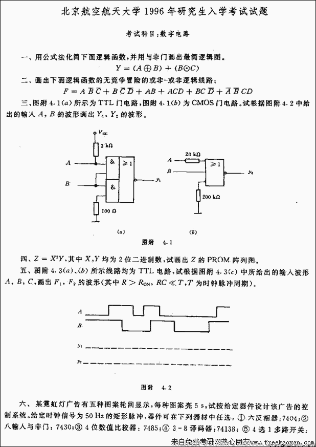专业课考研经验 本站小编 FreeKaoyan 2018-01-22北京航天航空大学2001年考研真题-数字电路与计算机组成原理