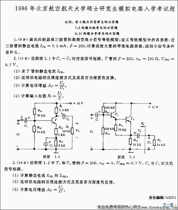 专业课考研经验 本站小编 FreeKaoyan 2018-01-22北京航天航空大学1996年考研真题-数字电路