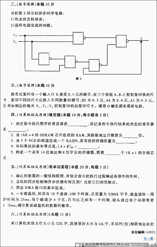 专业课考研经验 本站小编 FreeKaoyan 2018-01-22北京航天航空大学2003年考研真题-计算机专业基础