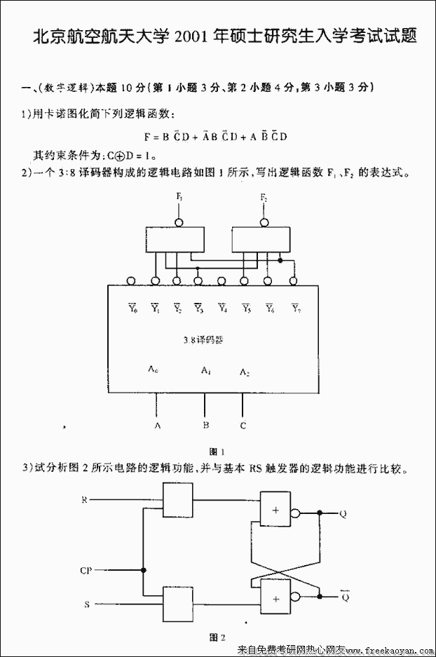 专业课考研经验 本站小编 FreeKaoyan 2018-01-22北京航天航空大学2001年考研真题-数字电路与计算机组成原理
