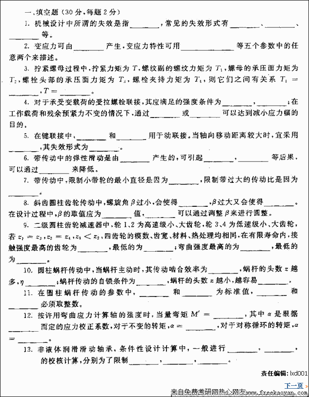 北京航天航空大学2001年考研真题-机械设计