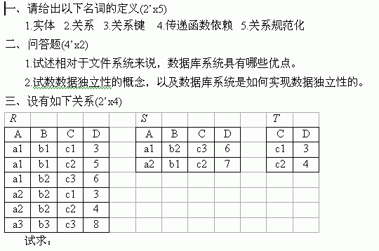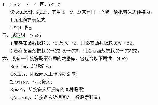 一、解释下列名词(2’x5)1.关系模式 2.导出表 3.概念模式 4.连接操作 5.聚集二、填空题(2’x5)1.关系的性质要求关系中的任意两元组__________,且任意两个不同的列必须有__________属性名(但可出自同一域)。2.关系的每个分量必须是__________,这被称为___ ...专业课考研经验 本站小编 FreeKaoyan 2018-01-22北京航天航空大学2002年考研真题-程序设计与数据结构