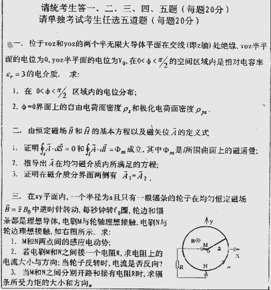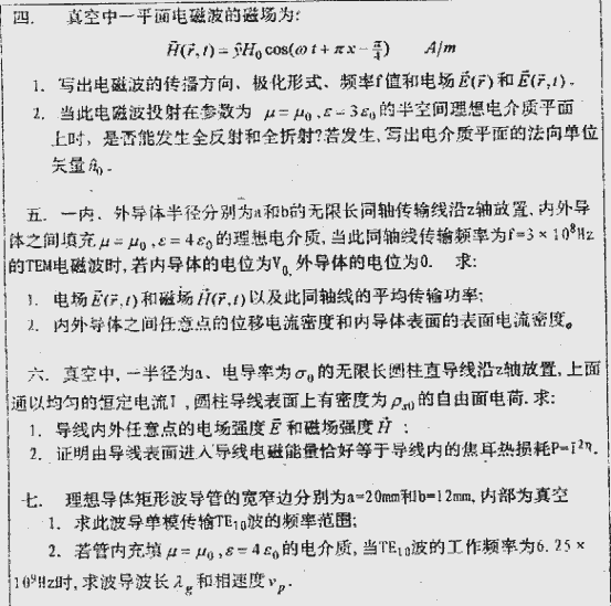 北京理工大学1999年考研真题-电磁场理论