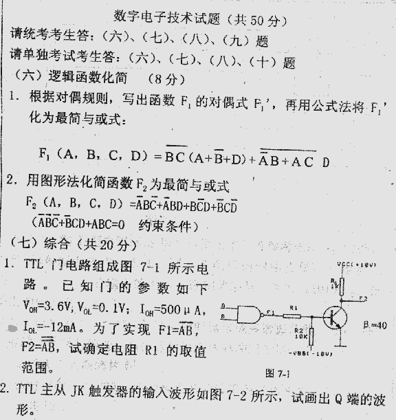 专业课考研经验 本站小编 FreeKaoyan 2018-01-22北京理工大学2000年考研真题-模拟与数字电路
