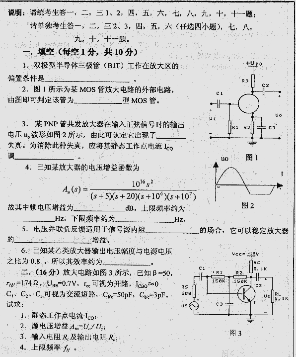 专业课考研经验 本站小编 FreeKaoyan 2018-01-22北京理工大学2000年考研真题-模拟与数字电路