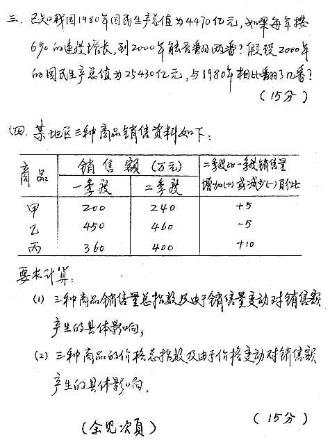 专业课考研经验 本站小编 FreeKaoyan 2018-01-22科目代码: 510 科目名称 : 综合考试(国民经济管理、统计学原理、货币银行学) 招生专业:国民经济学 国民经济管理学 一、名词解释 ( 每小题 5 分,共 20 分 ) 1 .产业政策 2 .社会总供给 3 .经济公平目标 4 .价格总水平 二、论述题 ( 每小题 15 分,共 30 分 ...