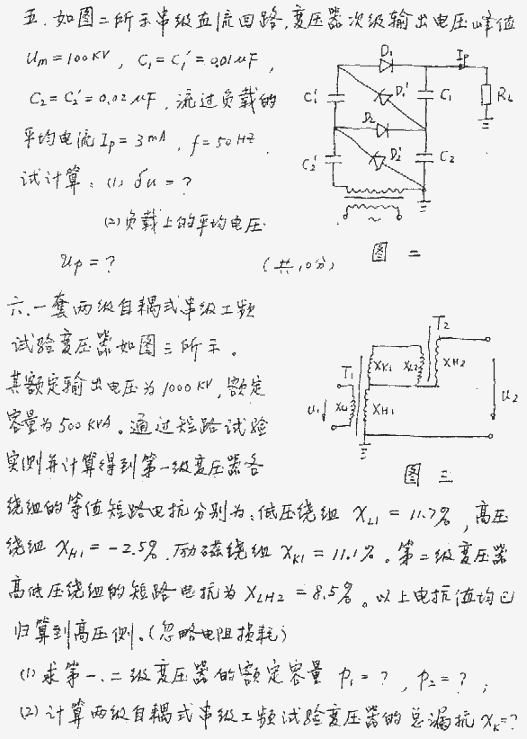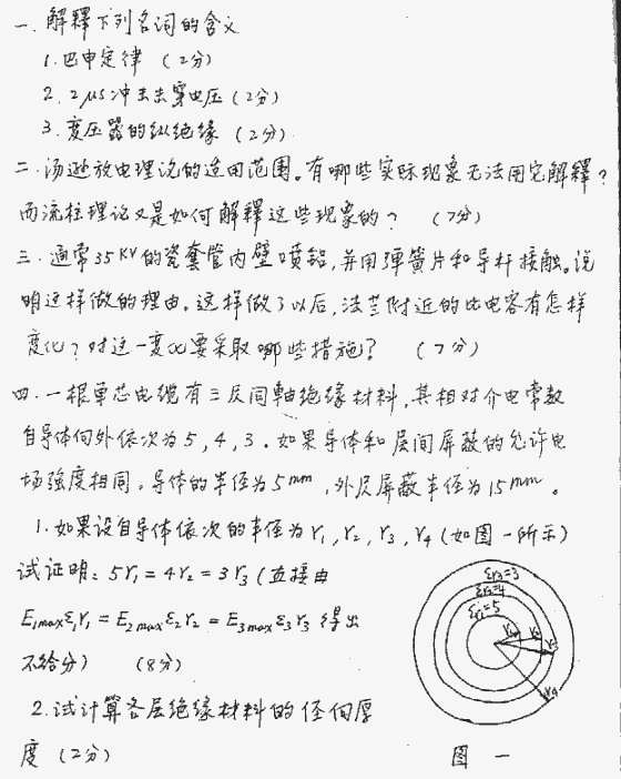 上海交通大学1999年考研真题-高电压技术