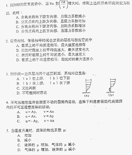 相关话题/上海交通大学 考研真题 流体力学